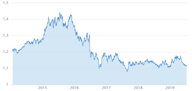 Sitemizden de gözlemleyebileceğiniz Sterlin-Euro paritesinin son 10 yılını incelersek şaşırtıcı olmayan sonuçlarla karşılaşıyoruz. 2016’daki referanduma kadar oldukça iyi bir performans sergileyen sterlin ayrılık kararının ardından 1.09’a kadar geriledi. Aşağıdaki tabloda 2017 Ekim ve 2018 Ağustos’ta iki toparlanma hamlesi olsa da istenilen düzeyde olmadı. Bu artışların ilkini seçim kararı alınmasını ikincini ise May’ın 2019 Haziran’ı için teminat vermesine bağlayabiliriz. Psikolojik bu artışların mali yapılarca desteklenmemesi ve May’ın istifası üzerine ise Sterlin yeniden 1.11 seviyelerine geriledi.