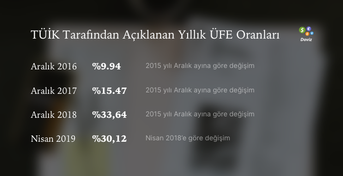 2016, 2017, 2018 ve 2019 Yİ-ÜFE oranları