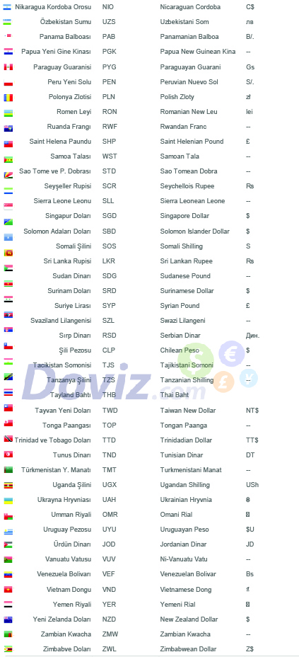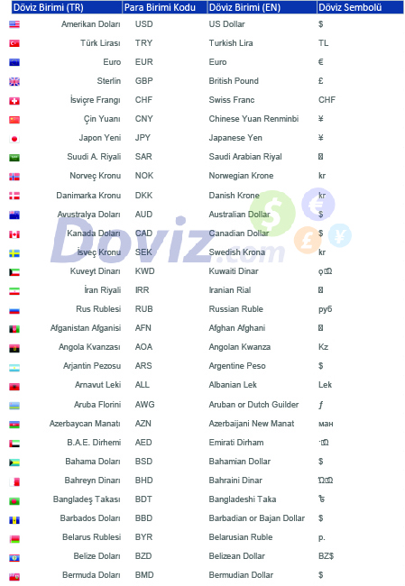 * Ülkelerin Para Birimleri ve Sembolleri listesi makalenin sonuında yer alıyor.